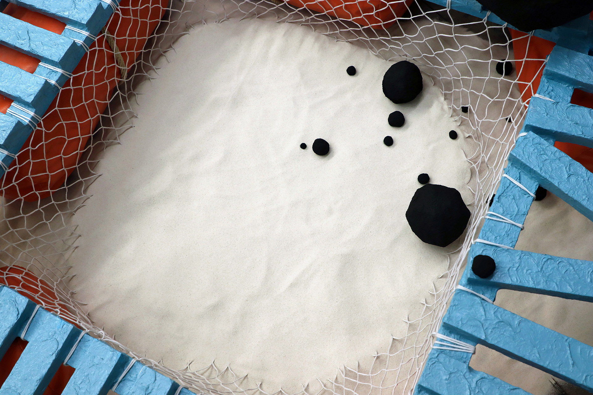2021, Holz, PVC Plane, Latex, Pappmaché, Sand und verschiedene Materialien,Größe variabel